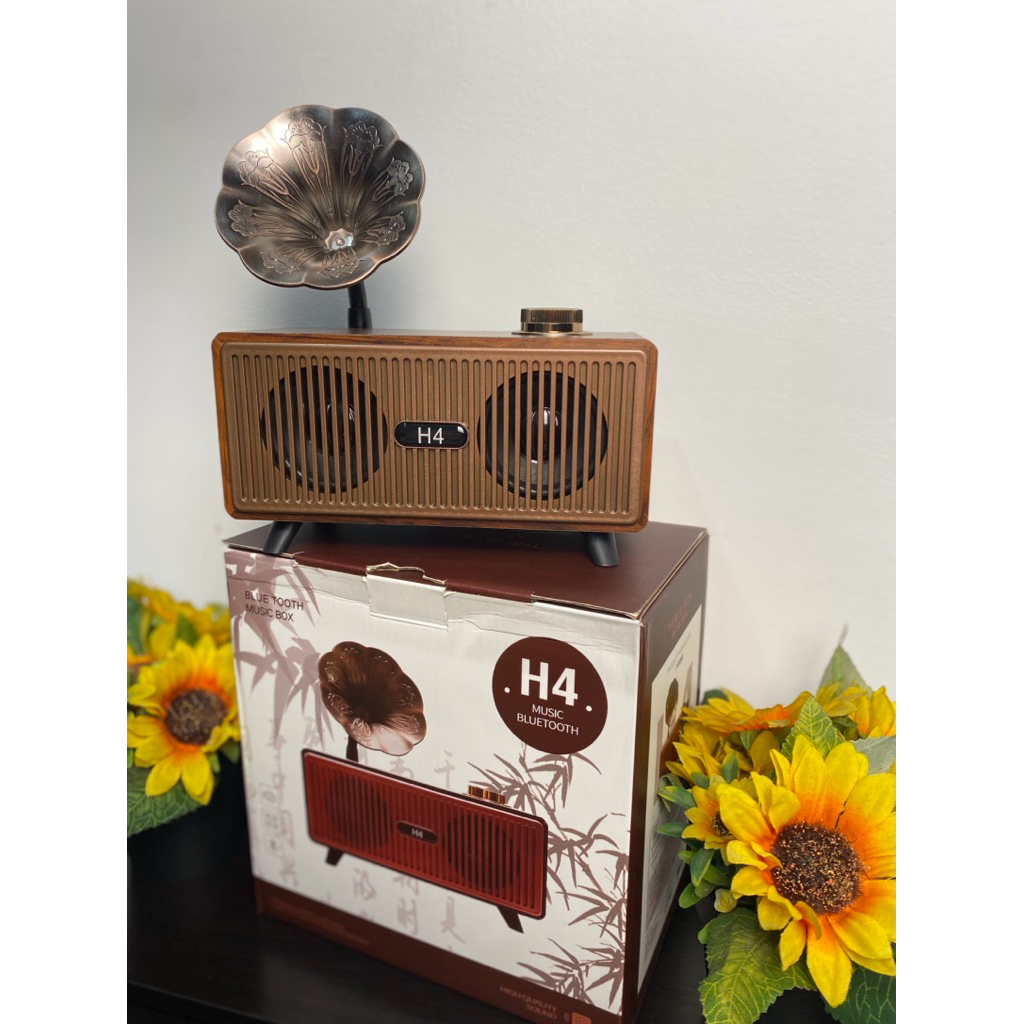 Speaker Bluetooth H4 Retro Music Box | Speaker Bluetooth Kayu dengan Desain Vintage Elegan
