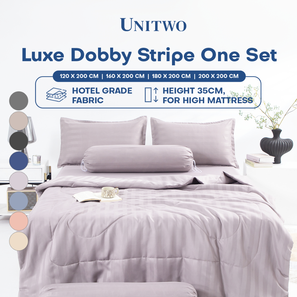 UNITWO LUXE [BED COVER ONLY] Bed Cover Hotel Motif Salur Selimut Tidur Lembut Motif Stripe Aesthetic 200X200 180X200 160X200 120X200