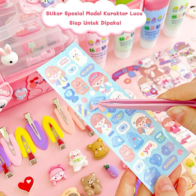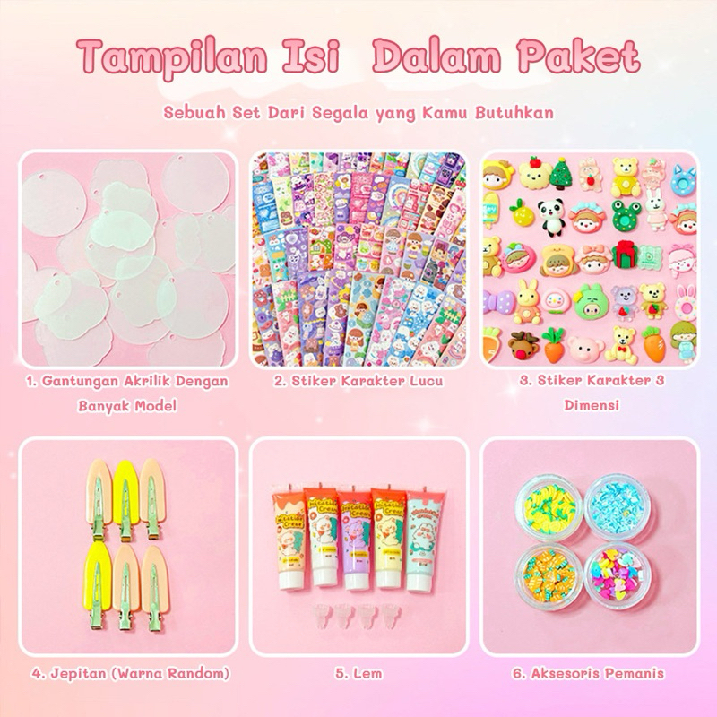 DIY Guka Set Gantungan Kunci Akrilik | Keychain Set Kartu Stiker luca Kotak Guka Cream Gum Kartun Sanrio Lotso Kuromi Melody Cinnamoroll | Gift kado hadiah souvenir goodybag mainan anak Makassar