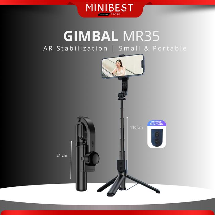 MINIBEST MR35 TONGSIS TRIPOD GIMBAL STABILIZER BLUETOOTH SELFIE STICK REMOTE TRIPOD 360° HP PONSEL - MR35 BLACK