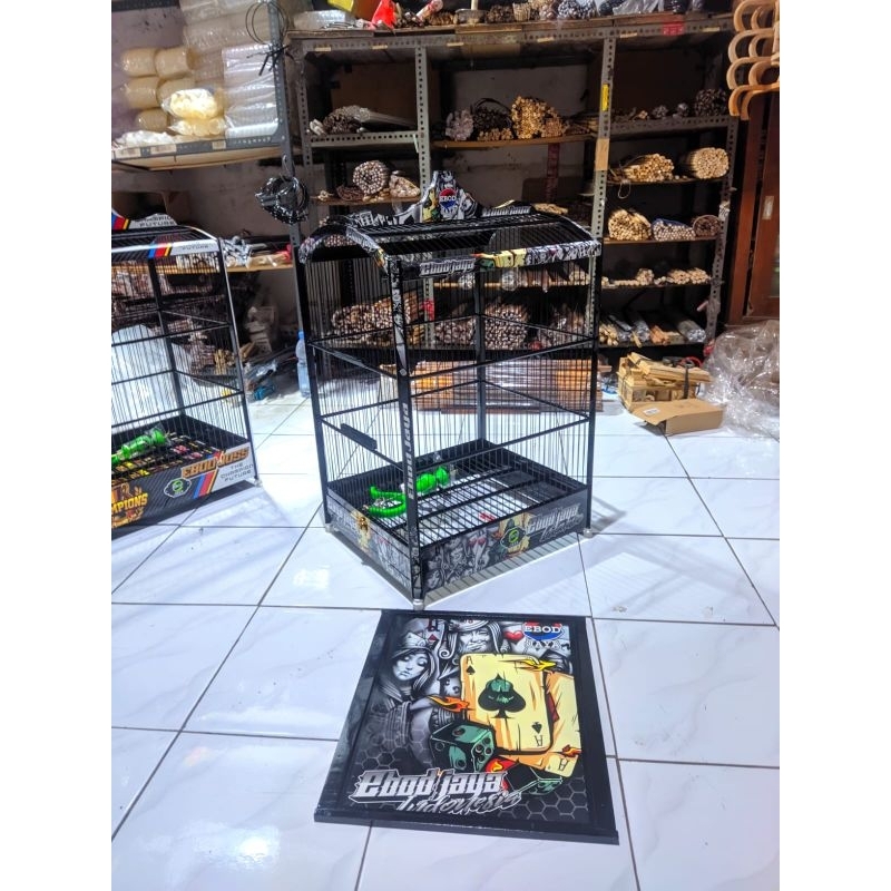 Sangkar Ebod Jaya Full Fiber 1,5mm Waterdecal No.2 Kandang Burung Lomba Kenari Cucak Ijo DLL