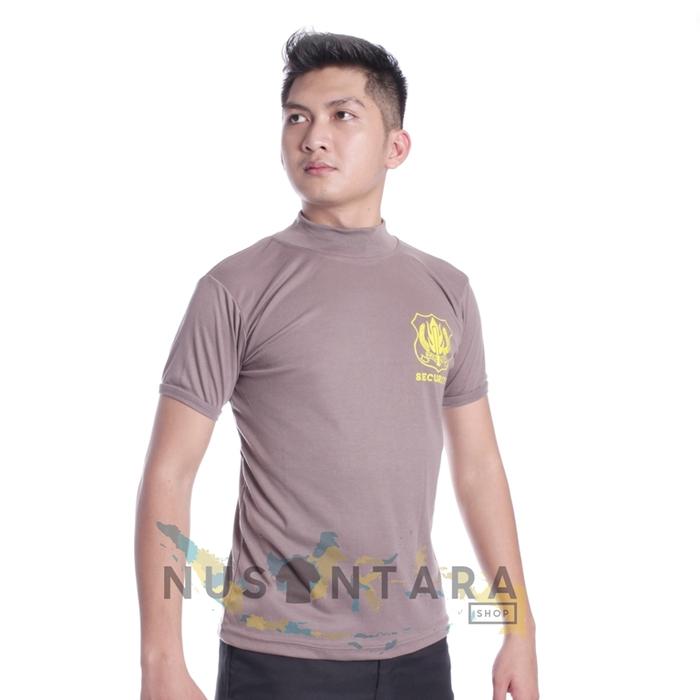 Kaos Satpam Security Kerah Tinggi Warna Putih Hitam Cream Navy Cokelat Kaos Dalam Satpam - Coklat Satpam, M