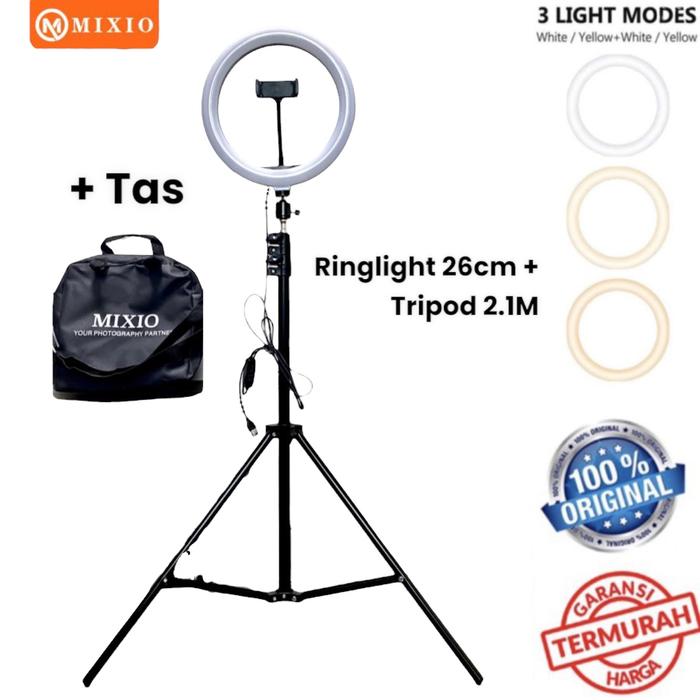 MIXIO RING LIGHT 26CM + LIGHT STAND TRIPOD 2M SELFIE LIVESTREAMER - NO TAS