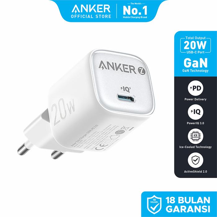 ANKER 20W WALL CHARGER ADAPTOR GAN USB TYPE C LIGHTNING MFI FAST CHARGING PD FOR IPHONE 17 16 15 14 13 SAMSUNG ICE-COOLED - A2699 - HITAM