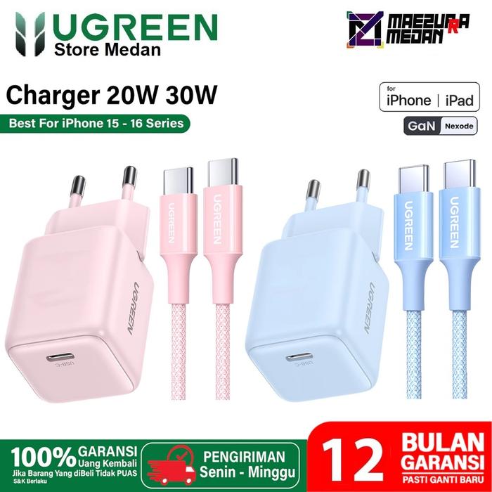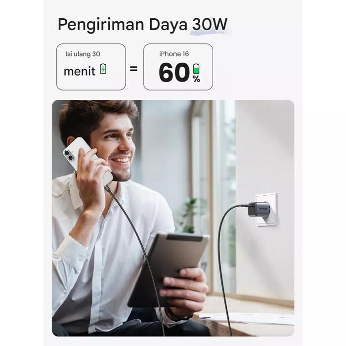 UGREEN CHARGER IP 15 16 SERIES IPD PRO TYPE C TO C FAST CHARGING 20W 30W - GAN-N 20W BLCK, ADAPTOR SAJA