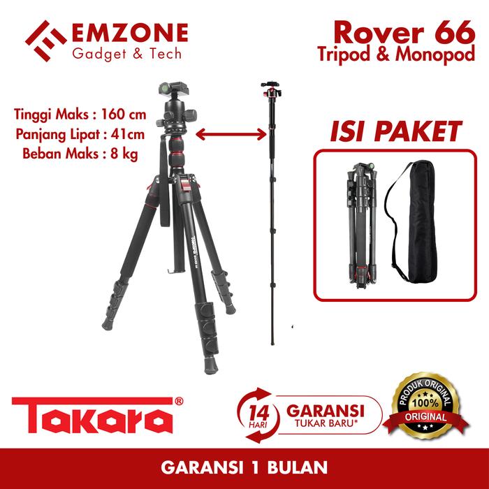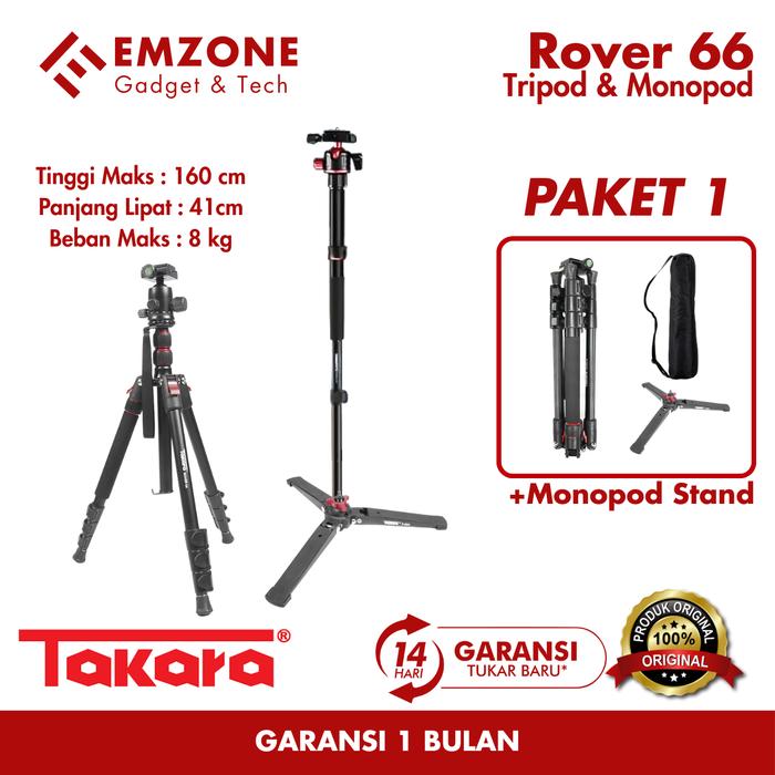 TAKARA ROVER 66 COMPACT 2 IN 1 TRAVELLER TRIPOD MONOPOD KIT CAMERA RUBBER - ROVER 66