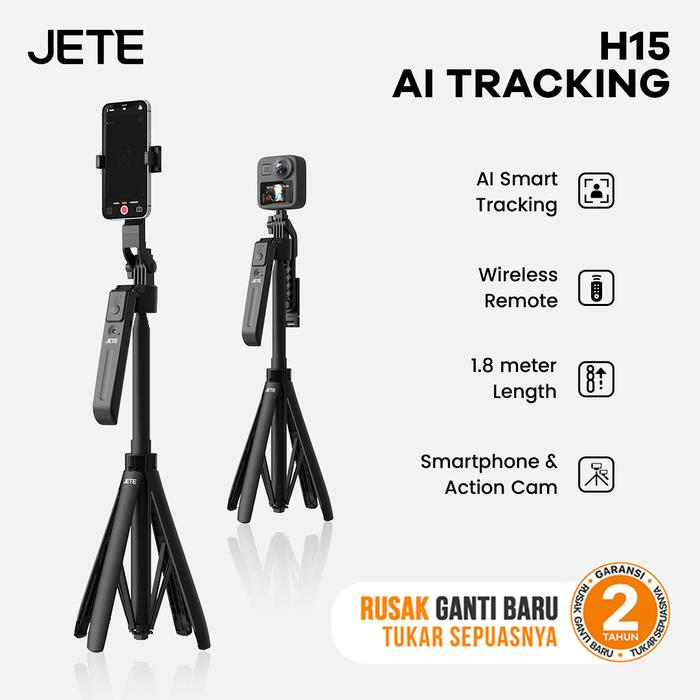 JETE TRIPOD BLUETOOTH H15 WITH AI MOTION SENSOR PORTABLE TONGSIS SELFIE STICK 1.8M WITH RING LIGHT POSTEL WIRELESS REMOTE ACTION KAMERA HP - UNIT H15 AI