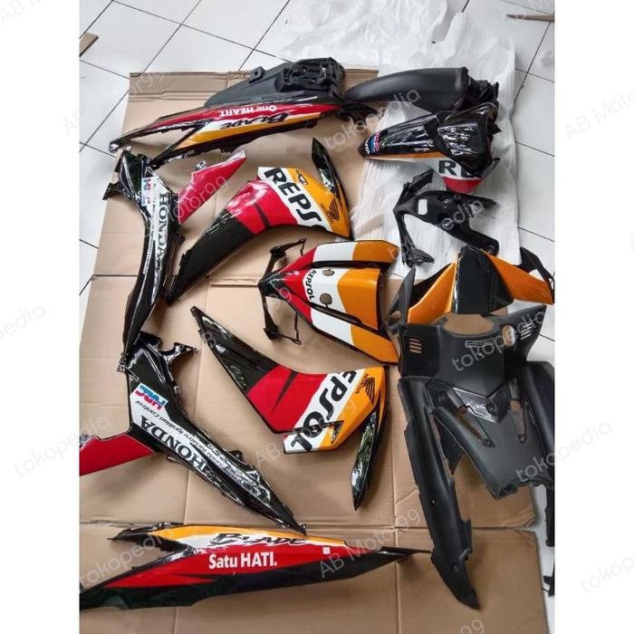 Cover Body Halus Kasar Motor Honda Blade New 110 + Striping Hitam
