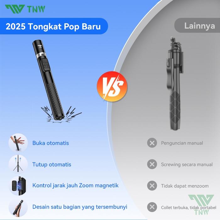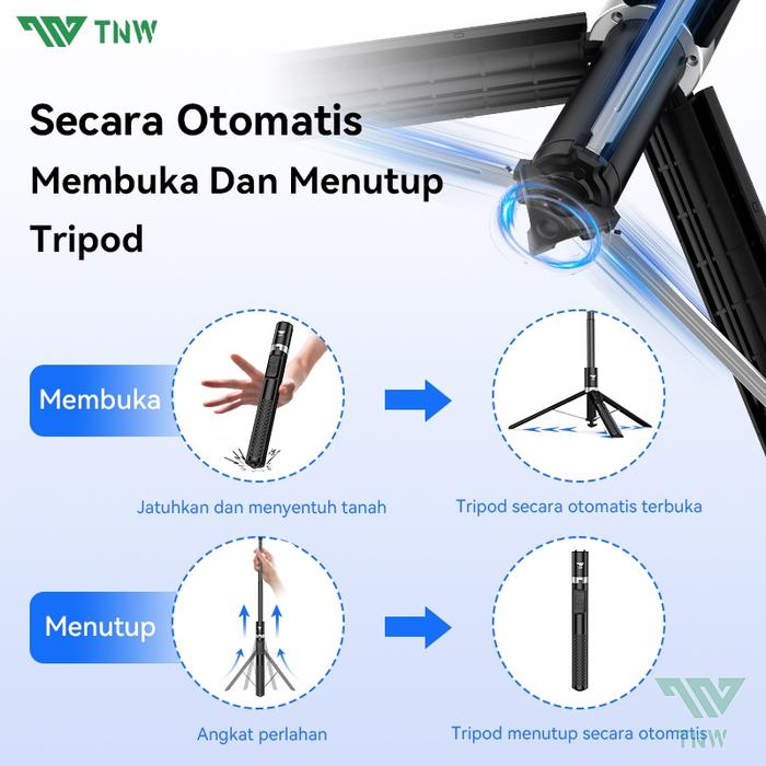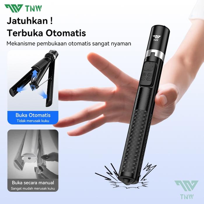 TNW PP1 TRIPOD AUTOMATIC POP UP SELFIE STICK TONGSIS TRIPOD BLUETOOTH 177CM ALUMINIUM TRIPOD WITH MAGNETIK REMOTE - PP1-HITAM