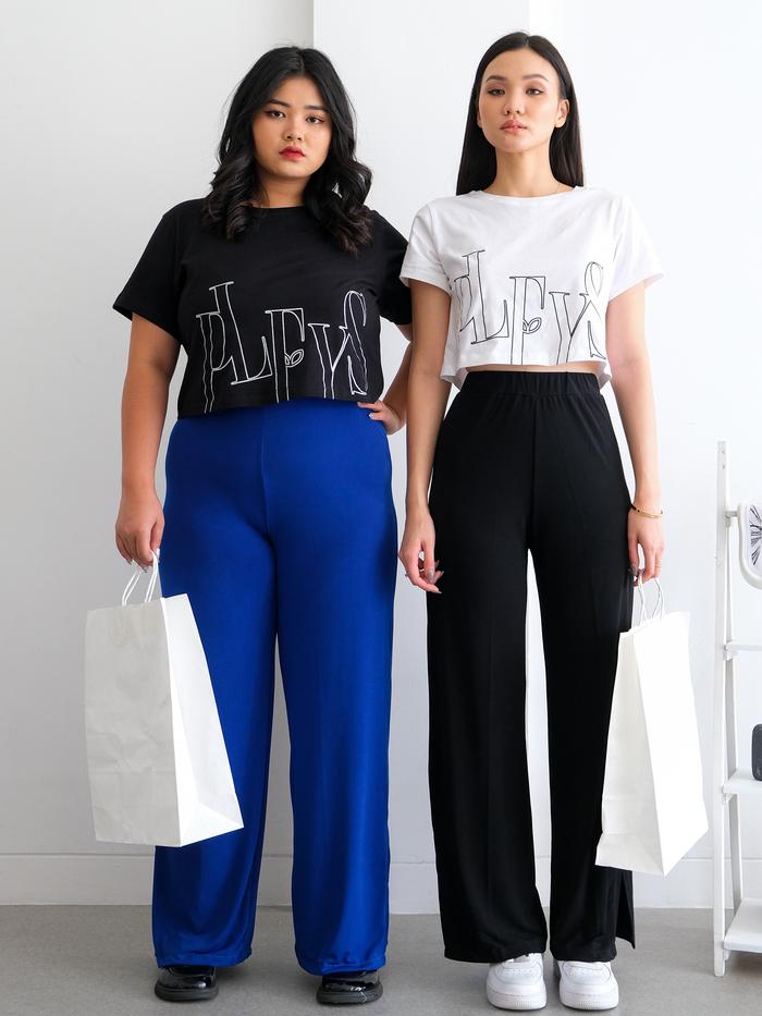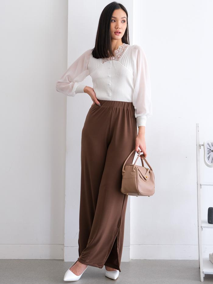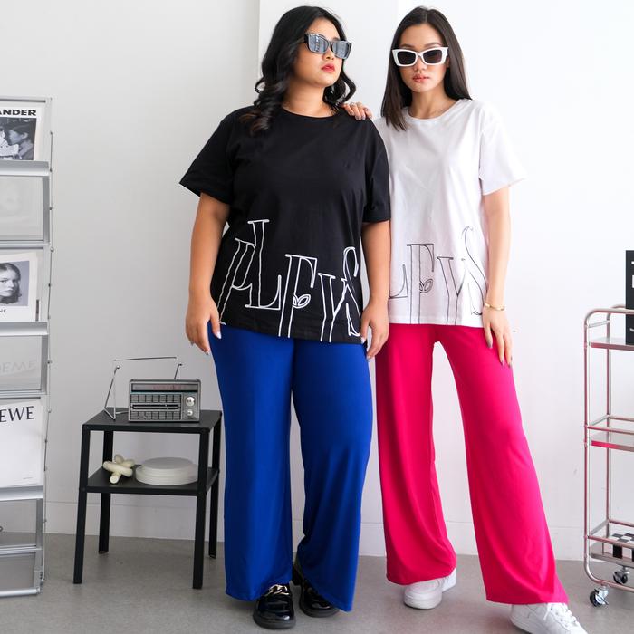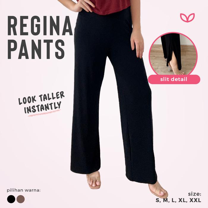 Pluffyschoice Regina Flare Pants S-Xxl Celana Panjang Bahan Jersey Wanita Formal Flowy Flit Casual Stretch Cutbray Slit