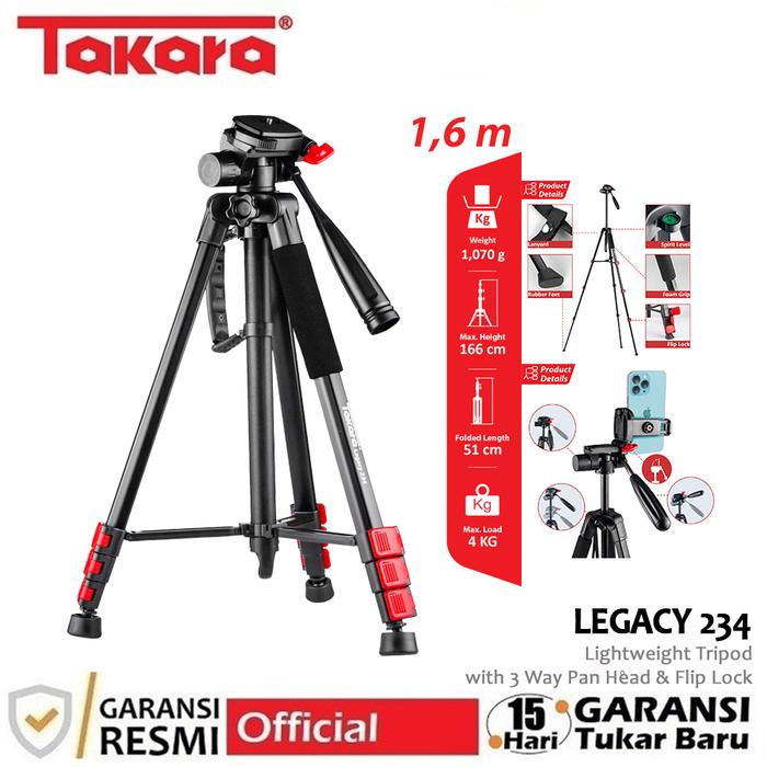 TAKARA LEGACY 234 LIGHTWEIGHT TRIPOD FLUID HEAD FOR CAMERA SMARTPHONE AKSESORIS KAMERA HOLDER - TRIPOD ONLY