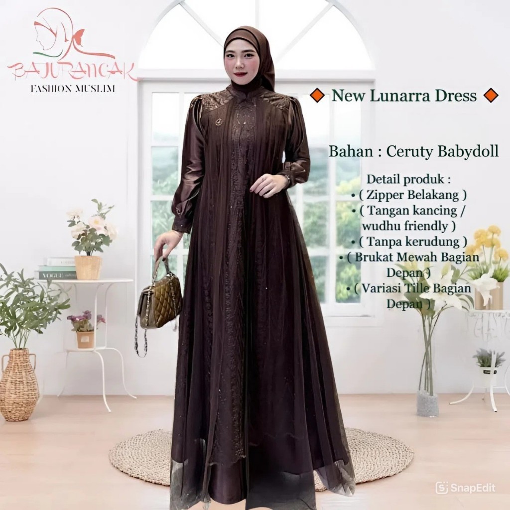 Lalunna Lace Baju Gamis Brokat Mewah Elegan Raya Trend 2025 Wanita Muslimah Pesta Ceruty Babydoll