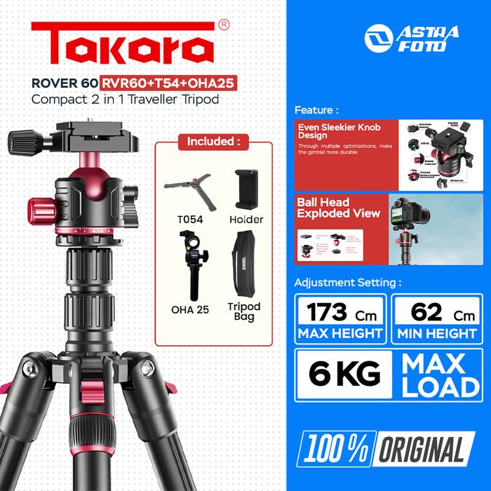 TAKARA ROVER 60 COMPACT 2 IN 1 TRAVELLER TRIPOD MONOPOD KIT - ROVER60 ONLY