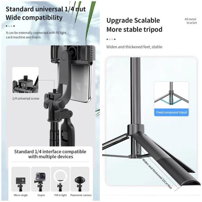 OCEAN BLUE OCN A65 TONGSIS TRIPOD 2 LED STABILIZER GIMBAL SELFIE STICK KONTEN KREATOR KOKOH - A65 NON LED