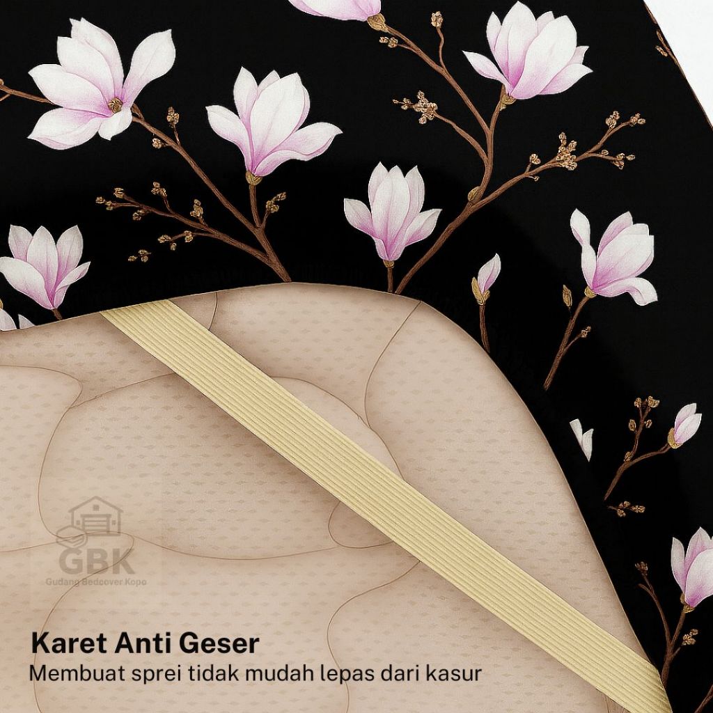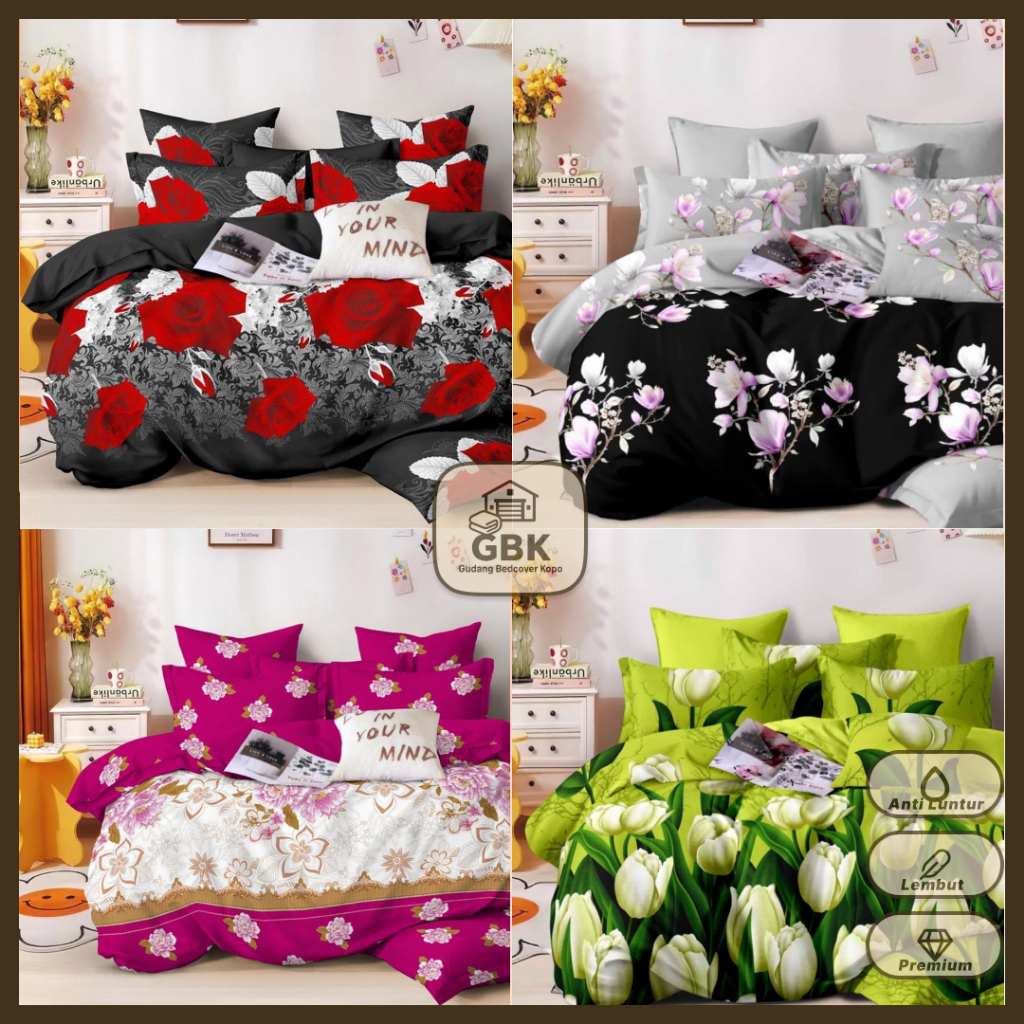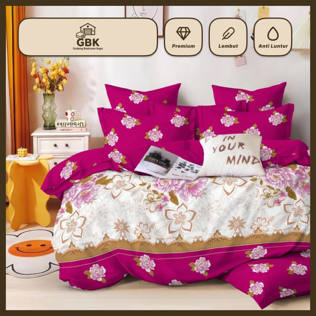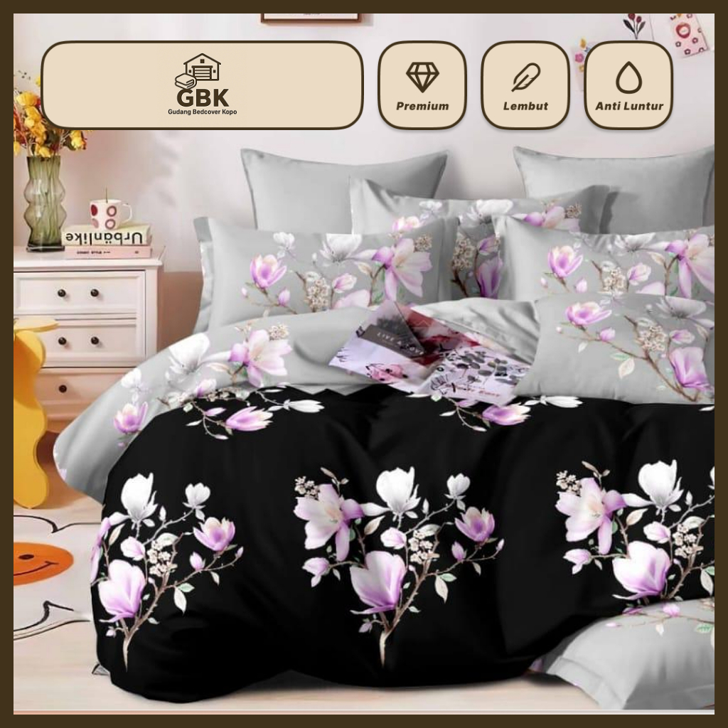 Bedcover Set 180 x 200 Sprei Sarung Bantal Guling 1 Set Sprei Uk 180x200 Bahan Microtex Premium Motif Bunga - GBK