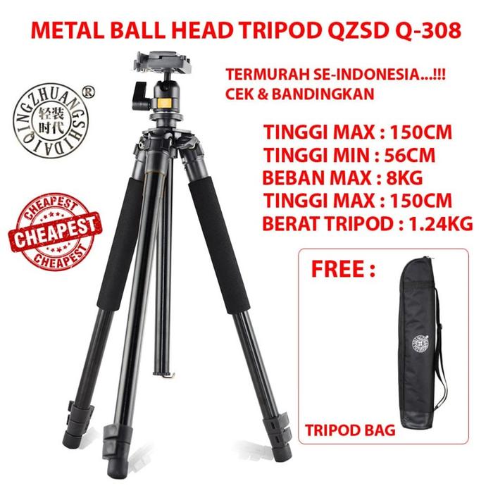 QZSD Q308 - TRIPOD METAL BALL HEAD PROFFESIONAL TERMURAH - MACRO MODE - BALLHEAD