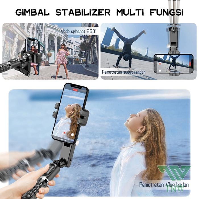 TNW-Q18 GIMBAL STABILIZER HANDPHONE GIMBAL HP STABILIZER TONGSIS HP BLUETOOTH TRIPOD - HITAM