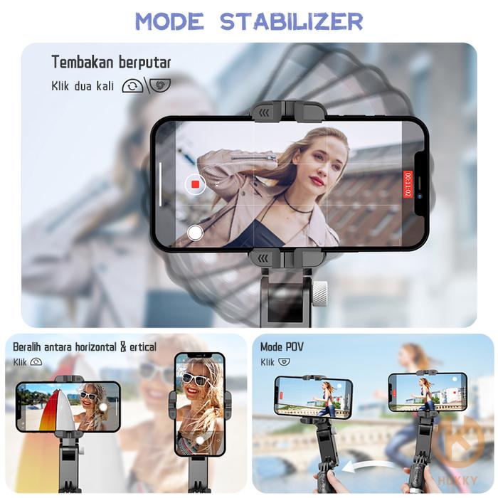 TNW Q18 GIMBAL STABILIZER HANDPHONE TONGSIS AI FACE TRACKING TRIPOD HP BLUETOOTH TRIPOD MULTIFUNCTIONAL STABILIZER - HITAM