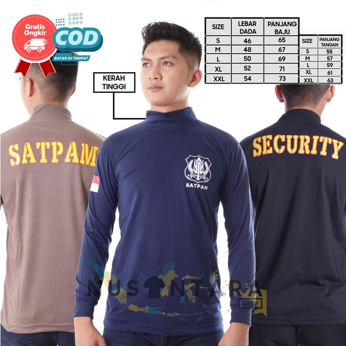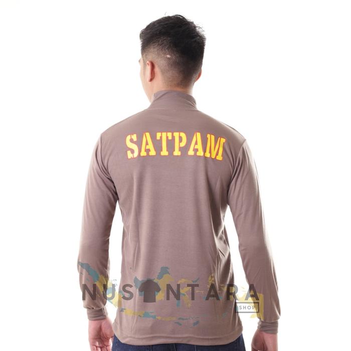 Kaos Satpam Security Lengan Panjang Kerah Tinggi Kaos Dalam Satpam - Coklat Satpam, M-Kerah Tinggi