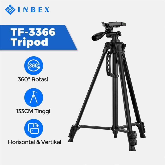 【FLASH SALE】【WARRANTY 30 HARI】INBEX 3366 TRIPOD/ALUMINUM ALLOY ABS/TRIPOD+FREE U HOLDER+STORAGE BAG/FLEXIBLE PORTABLE STAND SUITABLE FOR PROFESSIONAL PHOTOGRAPHY TRIPOD BLACK - TRIPOD+BAG
