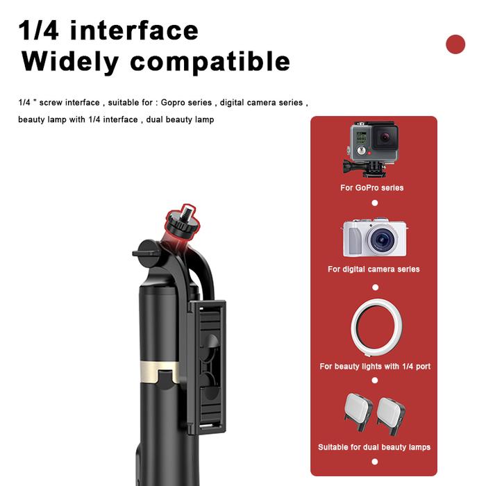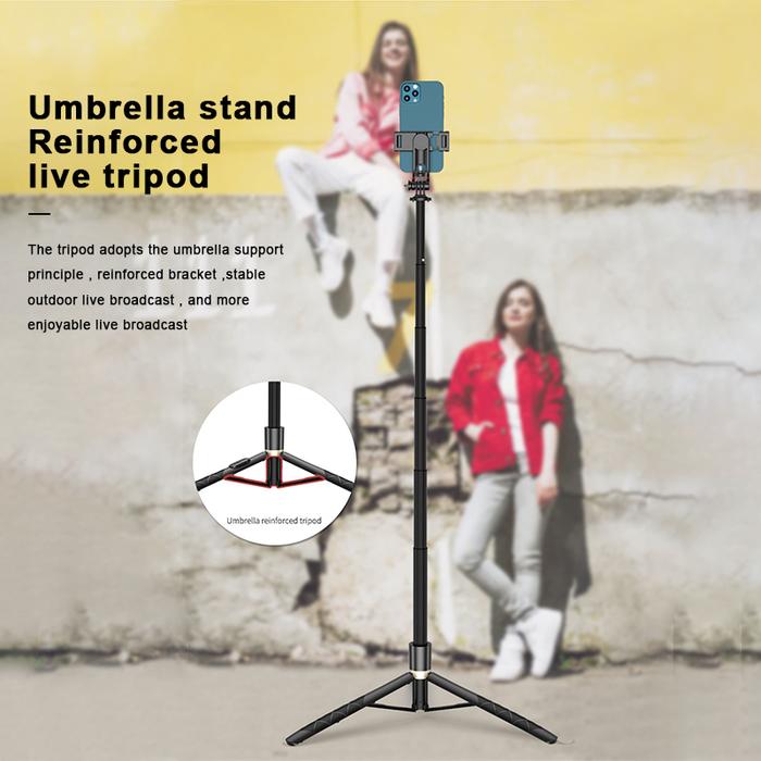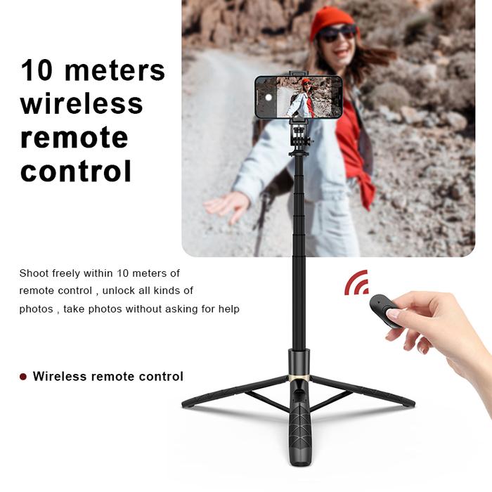 Q16 BLUETOOTH TRIPOD 156CM SELFIE STICK PREMIUM SELFIE STICK PORTABLE TRIPOD WITH SCREW MOUNT 1/4 FOR HP KAMERA AND PHONE PANJANG TONGSIS HOLDER HANDPHONE - Q16-HITAM