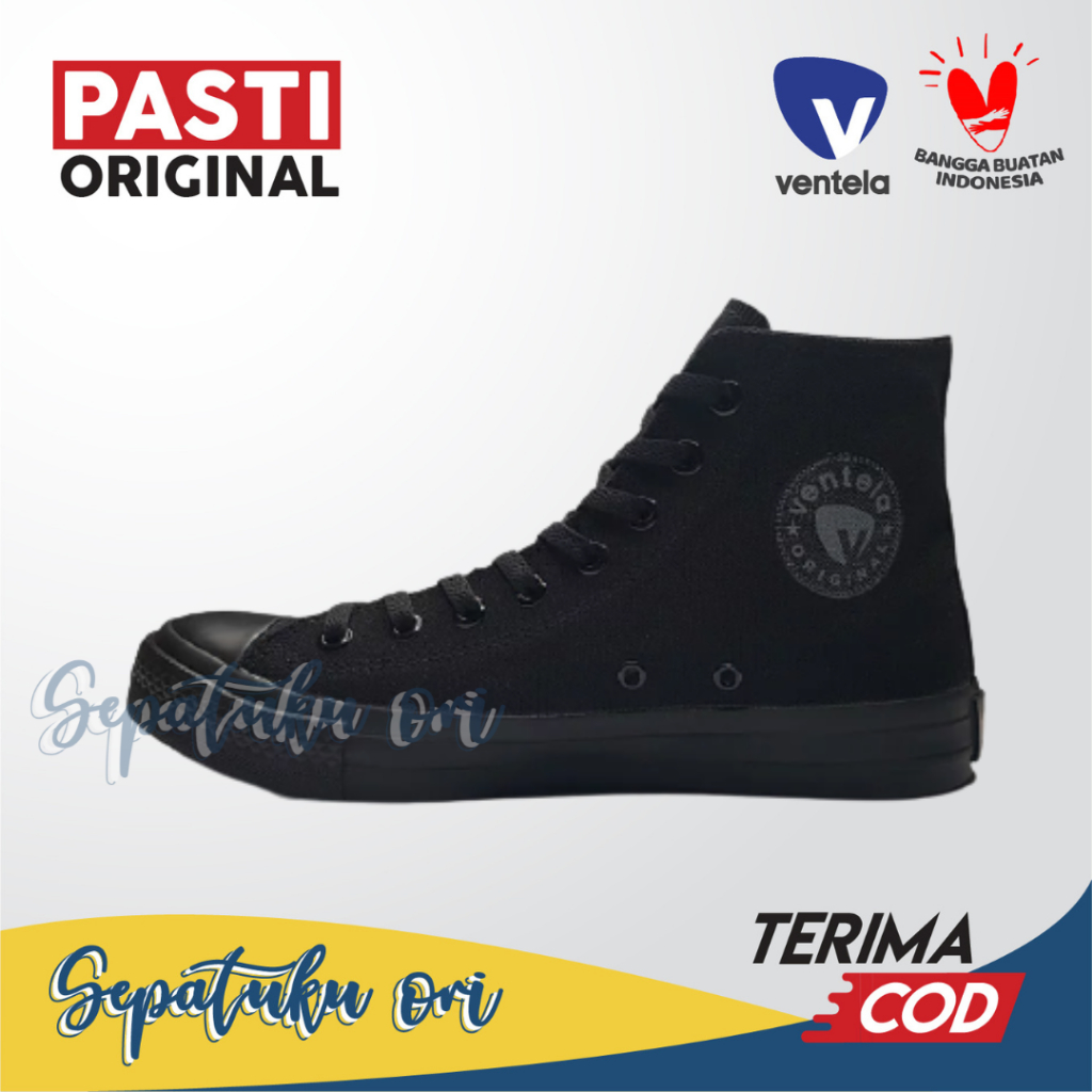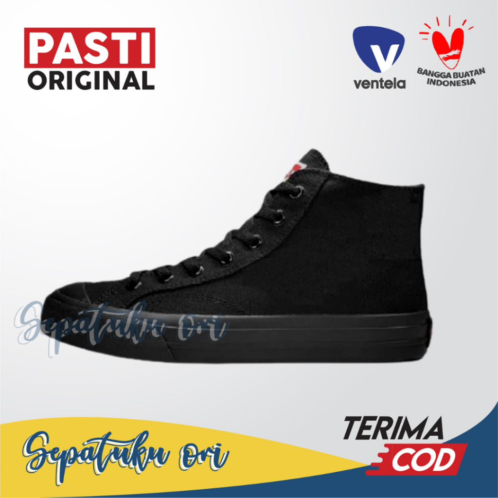 Ventela Ethnic High Full Black All Black | Sepatu Sekolah Hitam Vantela Ventella Ethnic Basic High Original