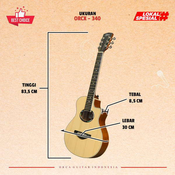 ORCA Gitar Akustik 3/4 Tanam Besi ORCX - 340 Senar String Guitar