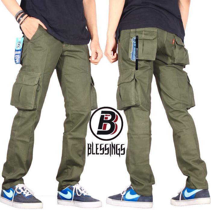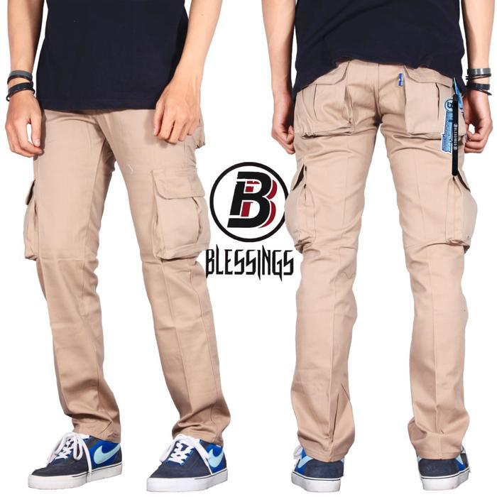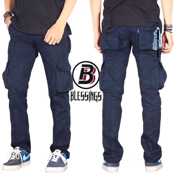 Celana Cargo Panjang Pria Warna Blue Navy Security Gunung Pdl Polos Nyaman Santai Kasual Reguler Katun Twill Premium Ter