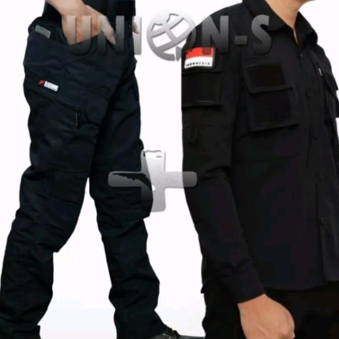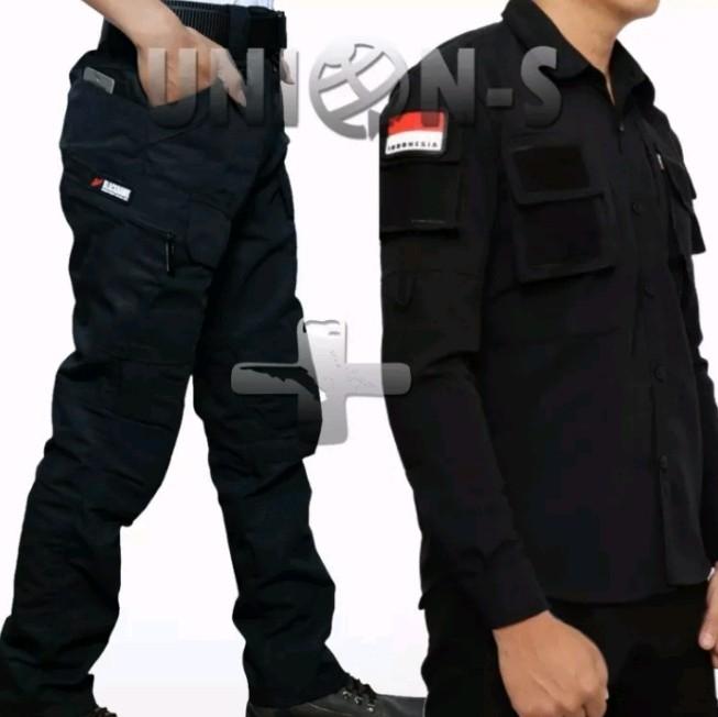 Setelan Baju Kemeja Tactical 511 + Celana Panjang Pdl Outdoor Katun Polos Lengan Panjang Pria Hitam Casual Dewasa Polos