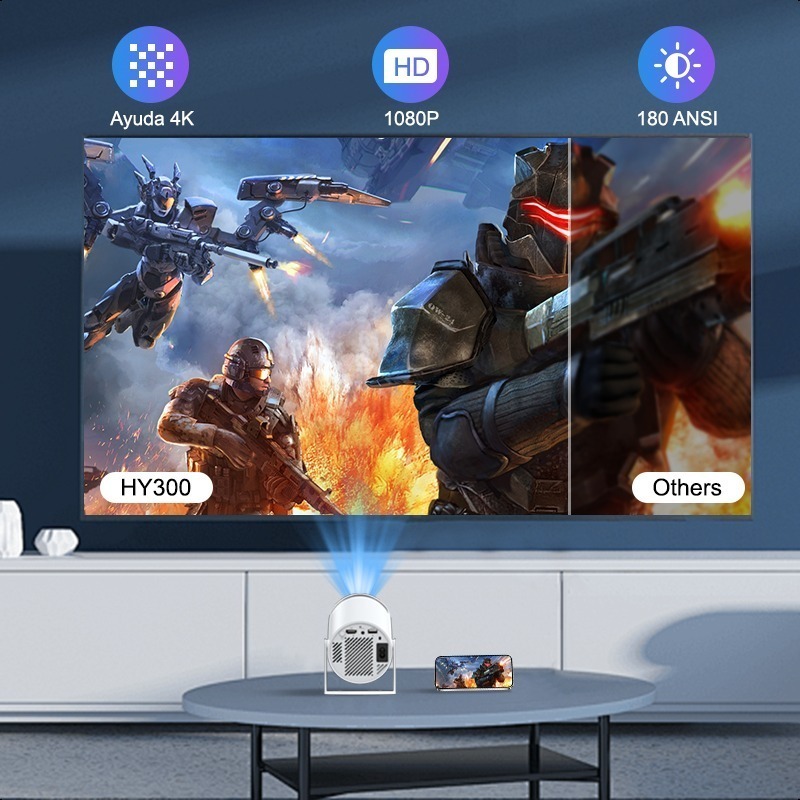 HY300 Proyektor Mini Android Layar Tancap Untuk HP Infocus Murah 4K Full HDMI Led TV Home Theater Dukungan Mirroring