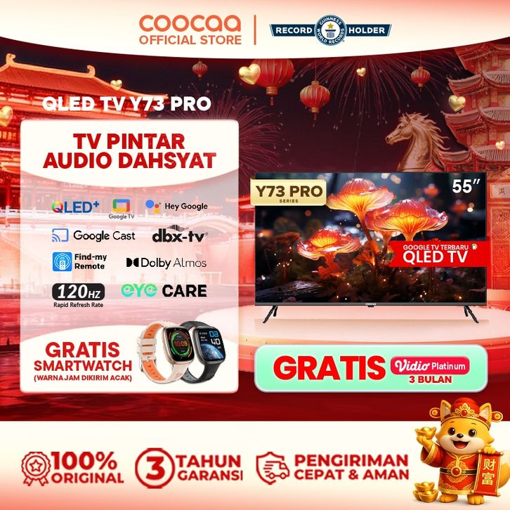 TV COOCAA TV 55 inch Y73 Pro - 4K QLED+ - Google TV - 120Hz Motion Smart TV Digital TV Murah Garansi Resmi CICILAN 0%