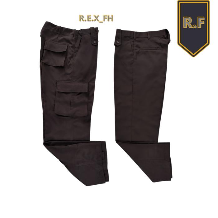 Celana Pdl Coklat Satpam Polisi Pria Panjang - Bahan Ripstok/Serat Kotak/Katun Tebal - Hitam - Coklat, M