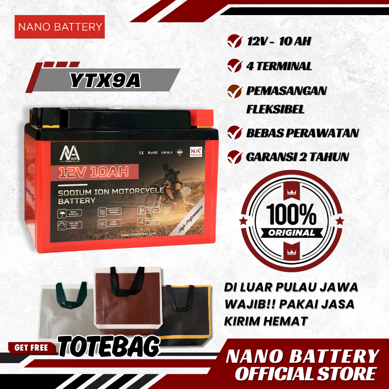 NANO BATTERY Promo 20 PERSEN Aki Motor Sodium Ion 12.4V 10Ah Aki Motor YTX9A 12.4V 10Ah Promo 20 PERSEN Aki Kering Garansi Resmi Dari Pabrik Sendiri