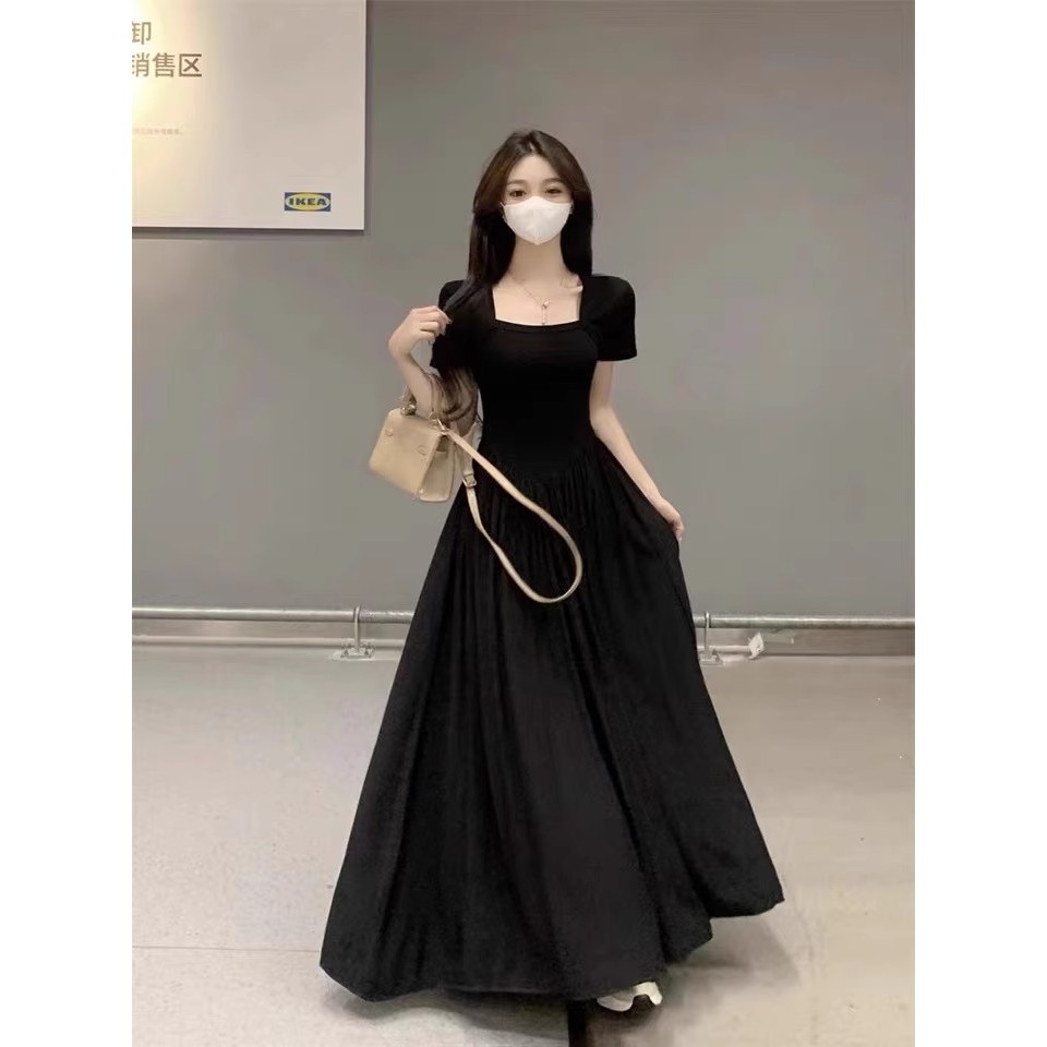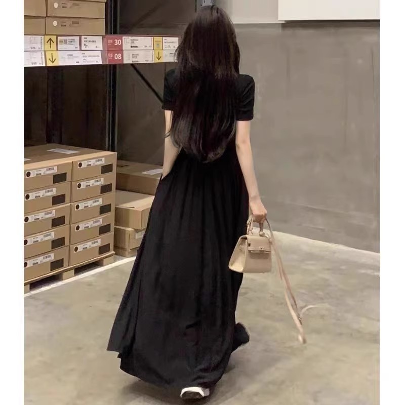 Keygirl Casual Long Dress Wanita Dress midi korean style hitam D3W4SA Bodycon dress Premium