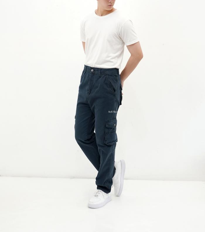 Vinarro - Celana Cargo Pria Tebal Bahan Semi Jeans Celana Kimpol Tebal Gunung Pria Pdl Cargo Panjang Pria Tebal Dan Halu
