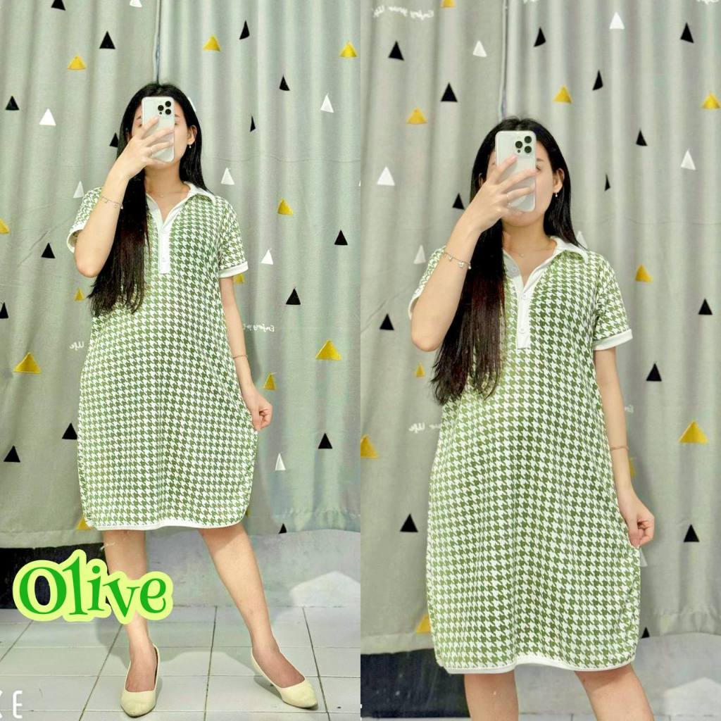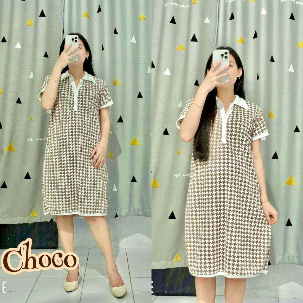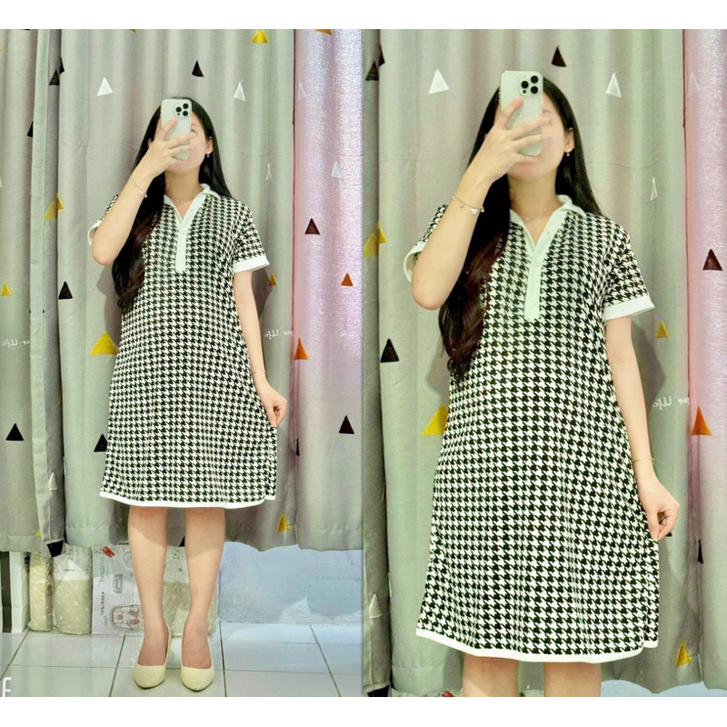 Dress SAMIRA Motif Midi Kerah Kombinasi