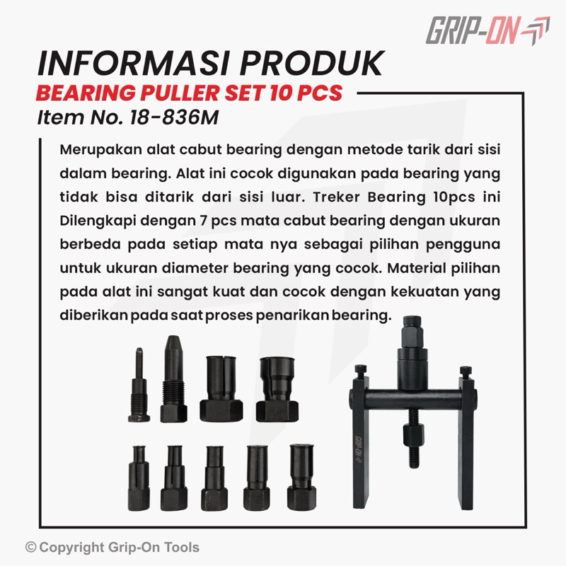 Grip-On Bearing Puller Set 10Pcs Treker Cabut Bearing 10 Pcs 18-836