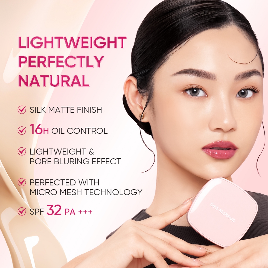 Sea Makeup Cushion || Fix and Flawless Silk Cushion – Foundation Cushion Ringan dengan Skin Tint Effect, 10 Shades, Oil