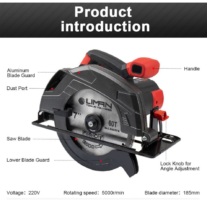 JLD 1853 CIRCULAR SAW 7inch 900w Mesin Potong Kayu Listrik Jigsaw Gergaji Kayu Circular Saw Murah Promo JD1857 & JD1853