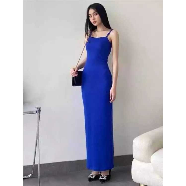 Dress Longdress Tanktop Panjang Tali Kecil Spaghetti Street Korean Style Party