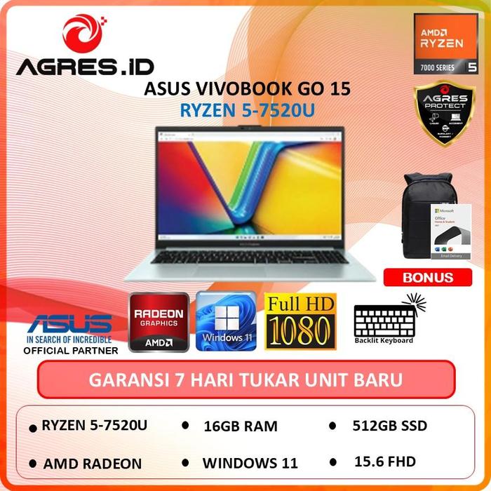 Asus Vivobook Go 15 E1504Fa Ryzen 5 7520 16Gb 512Gb W11+Ohs 15"Fhd - Non Bundle, Windows 11 Home