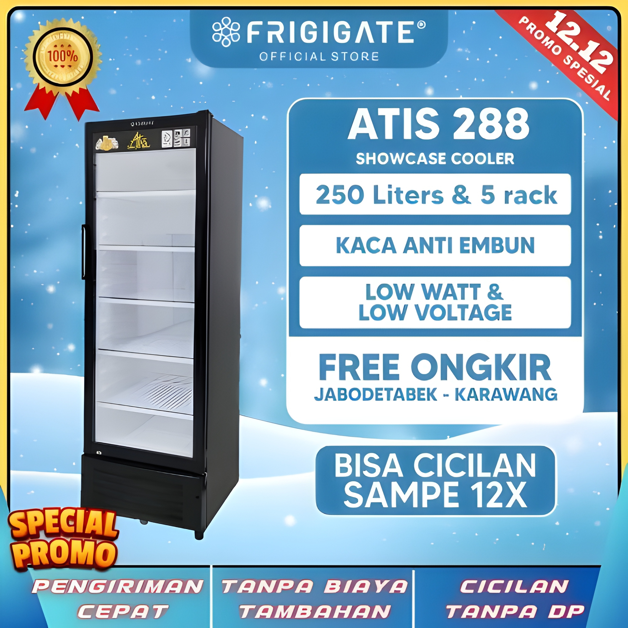 FRIGIGATE Pendingin Minuman Warung SHOWCASE SCA 200 / ATIS 238 4rak Cooler Kulkas Kaca LOW Watt