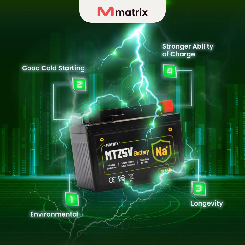 Matrix - AKI Motor Sodium Ion Hijau I 12V 5,5Ah MTZ5V Garansi 2 Tahun