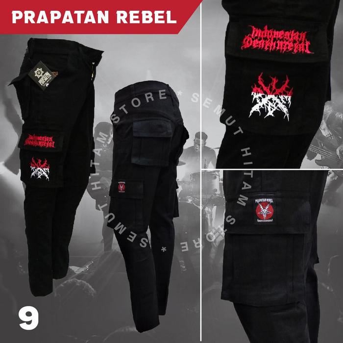 Prapatan Rebel Celana Panjang Cargo / Kempol Panjang Alpin Pdl Hitam Bordir Band Musik Metal / Punk Prapatan Rebel Pria