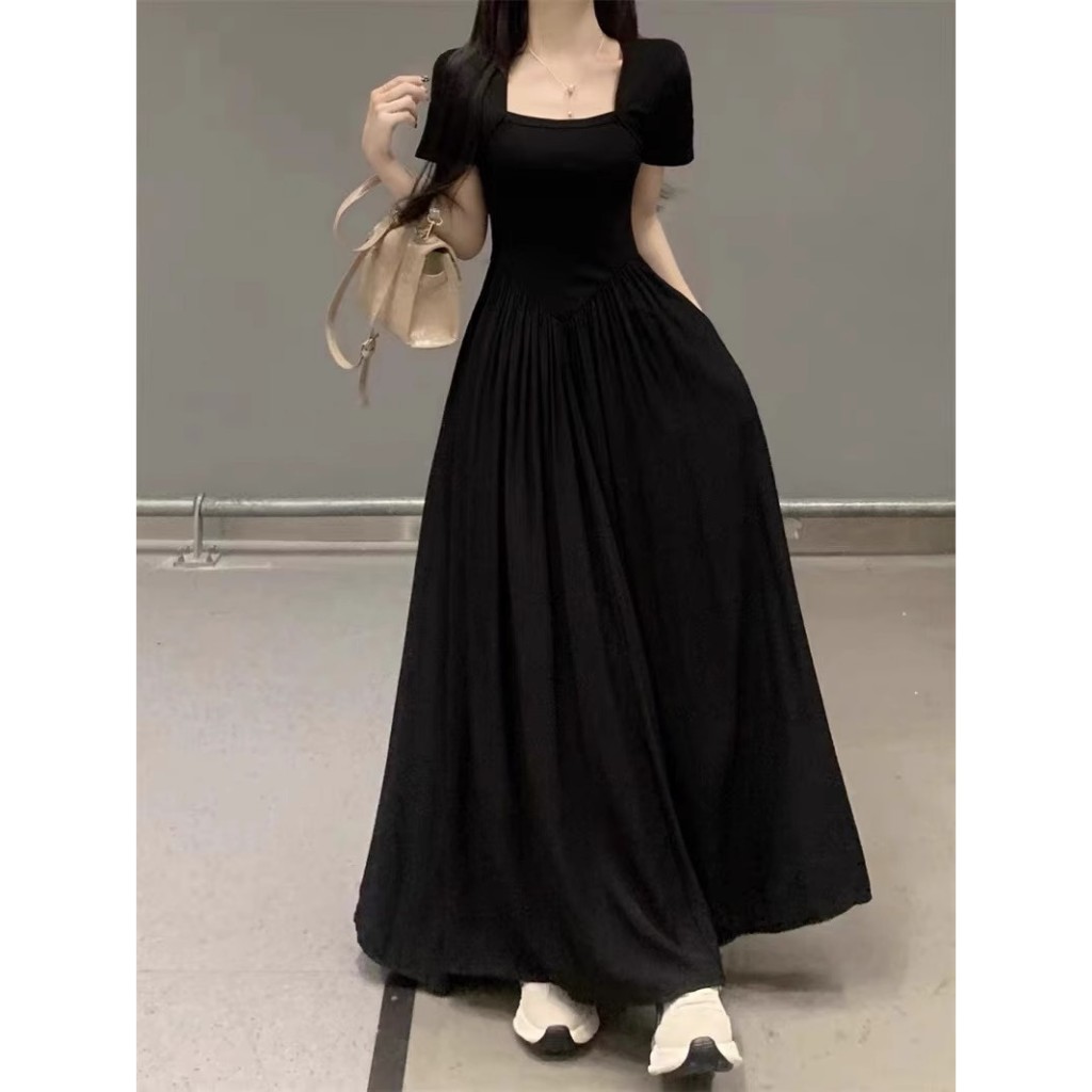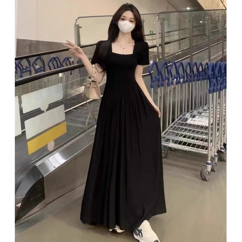 Keygirl Casual Long Dress Wanita Dress midi korean style hitam D3W4SA Bodycon dress Premium