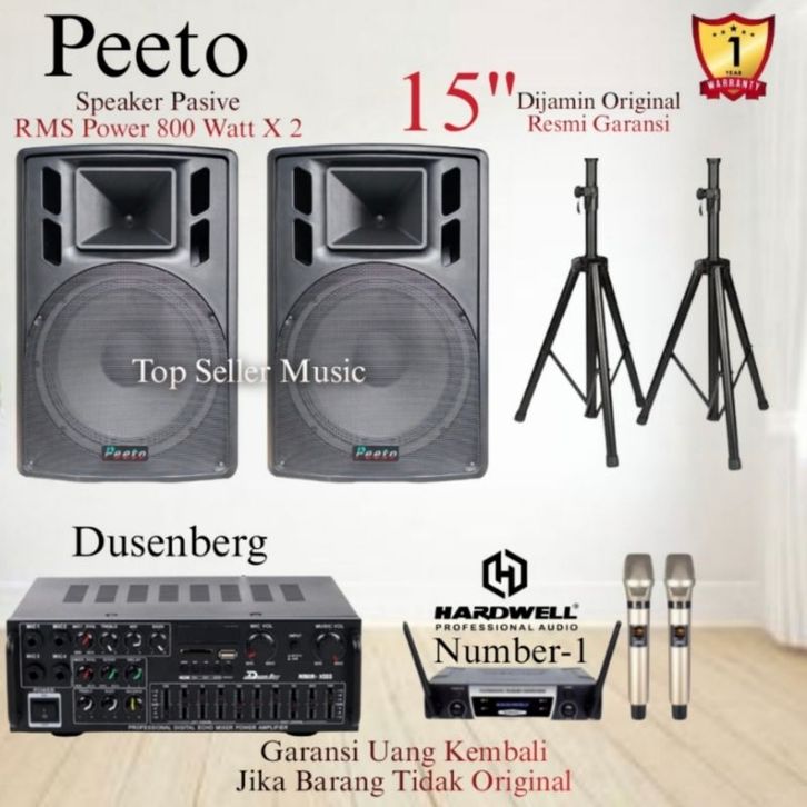 Paket Sound System Peeto 15 Inch Original Amplifier Karaoke Mic 2Wireless