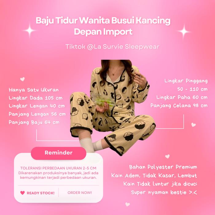 La Survie Baju Tidur Wanita Busui Kancing Depan Premium Sleepwear - M Dog Coklat