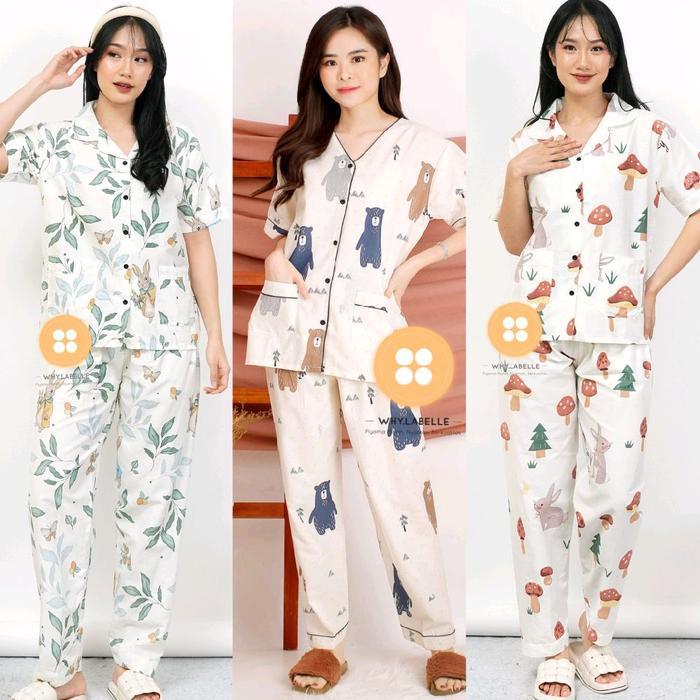 baju tidur wanita/piyama wanita katun celana panjang - bear