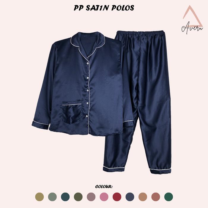 AVERU - Baju Tidur Wanita Piyama Setelan Satin Velvet Premium One Set Lengan Panjang PP - Polos - Black