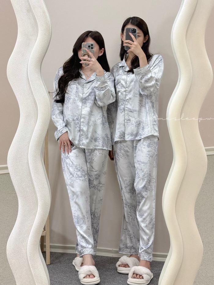 [PickMe] #A06 Baju tidur lengan panjang stelan oneset wanita baju tidur satin lengan panjang - XL
